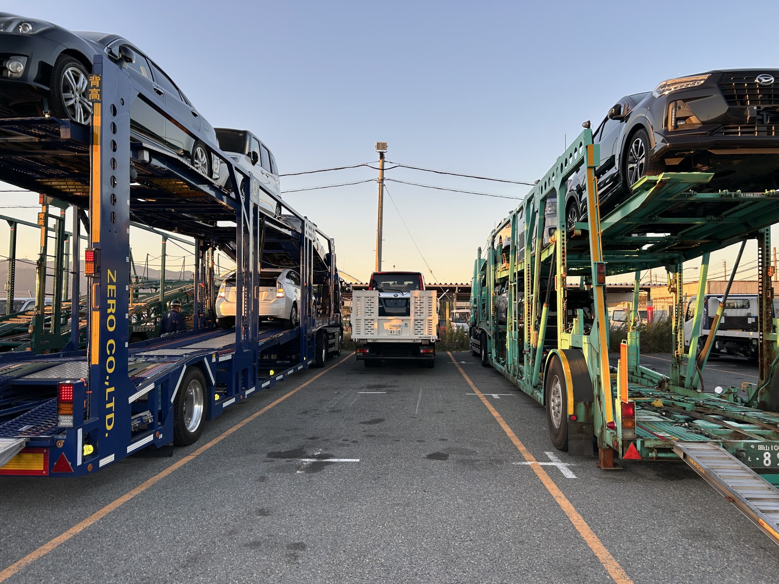 ちなみに左は株式会社ゼロさんの積載車で、弊社もいつもお世話になっている陸送会社さんです。