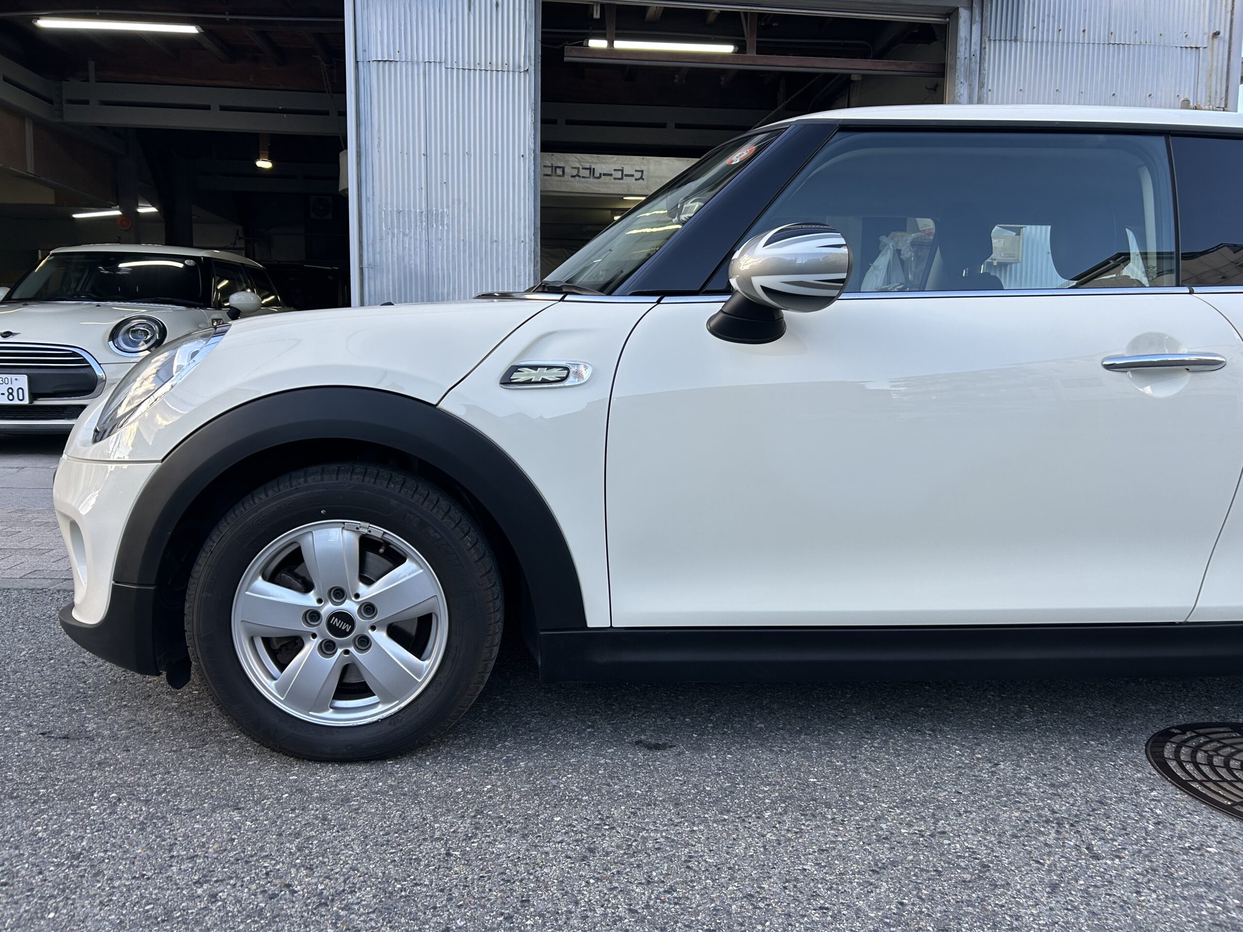 販売させていただきましたMINIONE、ドアミラーがユニオンジャックでした。 ユーザー様のご希望で、ブラックに塗装させていただきました。 個人の趣味にもよりますが、私的にはブラックに塗装後の方が好みです。 ドアミラーの塗装だけでもお受けしておりますので、ユニオンジャックでない方がといい思う方は是非ご相談ください。